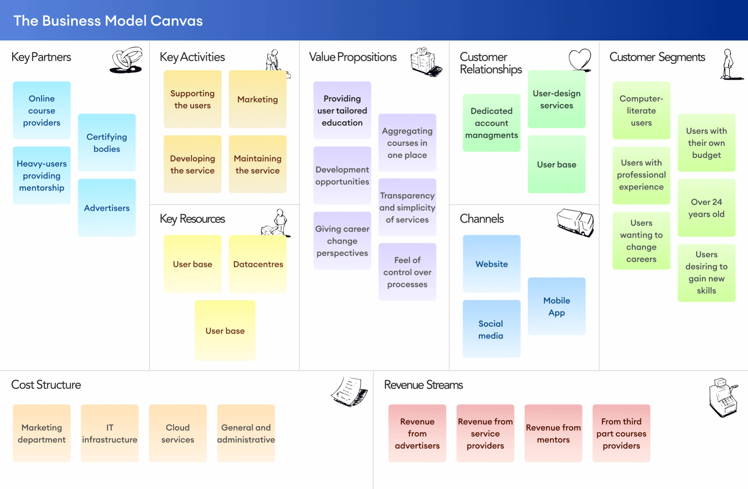 The response to user needs, wanting to improve or learn new skills., is a platform, reconciling the functionalities characteristic of social media with educational websites. The heart of the service is founded on a couple values, the most important of which are as follows:
