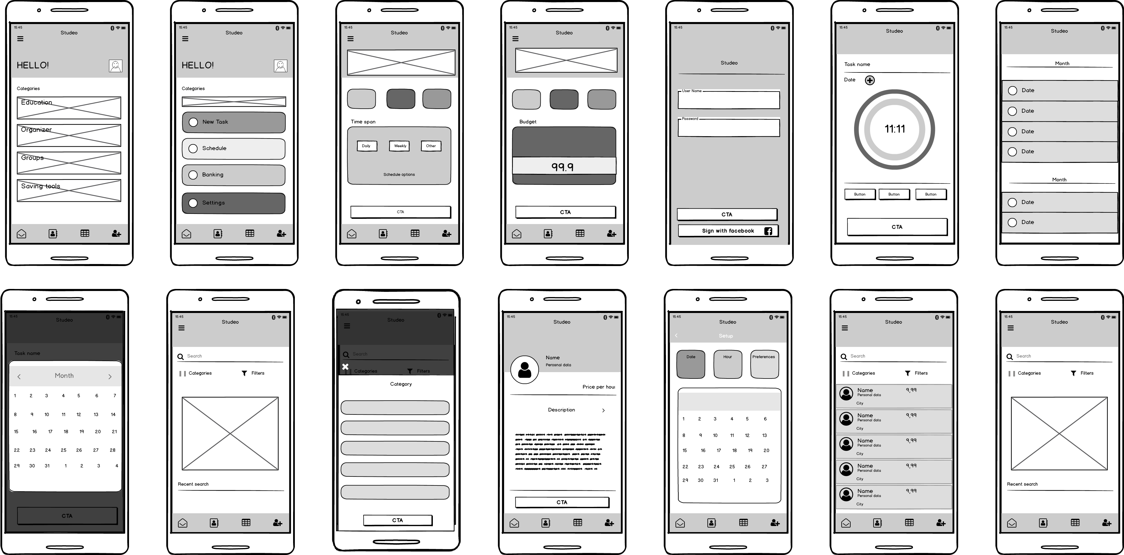 WIREFRAMES: The first tangible sketches and solution proposals come to life, either as individual wireframes or complete wireflows representing user paths. If necessary—for testing or presentations—an interactive and clickable prototype can be created using tools like Axure or Figma. This frames enables identification of vulnerabilities and provides the flexibility to make real-time adjustments to the user interface.